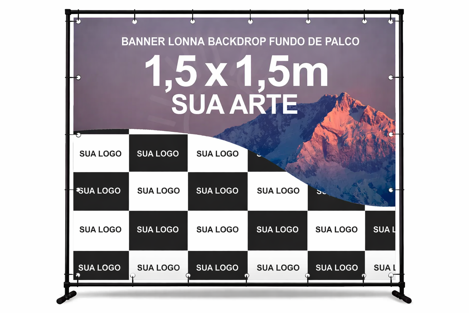 Painel banner backdrop 1,5x1,5m com ilhós, ideal para aniversários, festas e eventos. Impressão digital com excelente acabamento e fácil instalação.