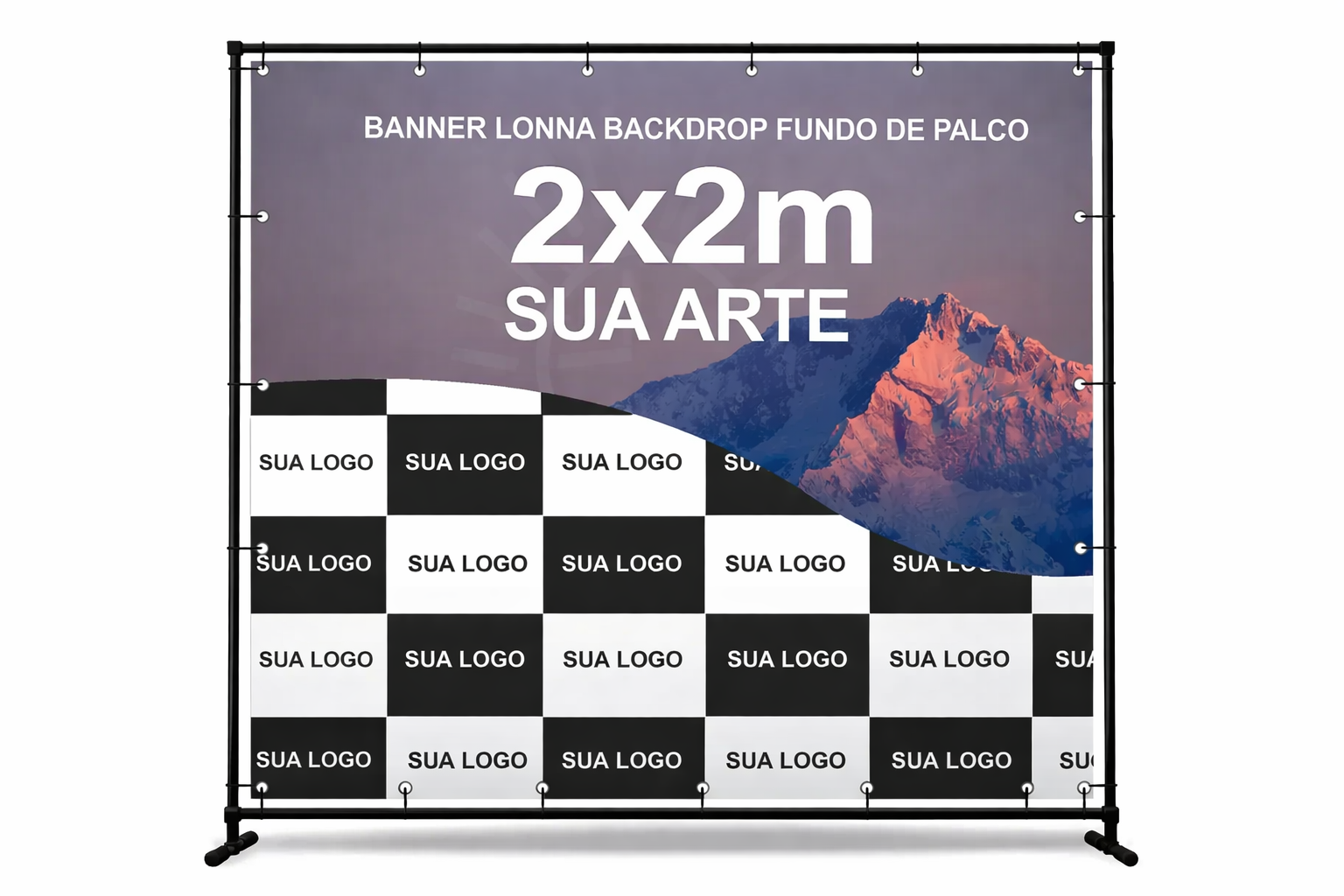 Painel banner backdrop 2x2m com ilhós, sem estrutura, ideal para aniversários, festas e eventos. Impressão digital com excelente acabamento.